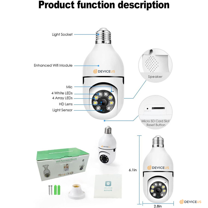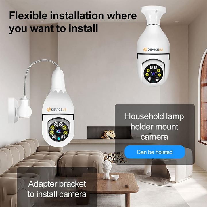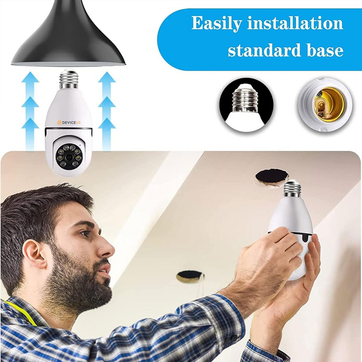 - This WiFi camera adopts E27 bulb base, easy to install, just screw it into the base, no additional installation steps.
