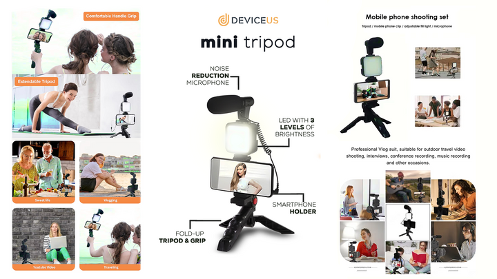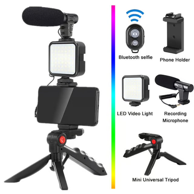 Picture crisp, stable video, crystal-clear voice, and flawless lighting—all with the tools you need at your fingertips. Snap your phone into the sturdy tripod, hit record, and watch the ring light illuminate your features perfectly while the microphone captures every word. Whether you’re filming tutorials, streaming live, or creating viral TikToks, this kit makes it effortless and fun to look and sound your best.