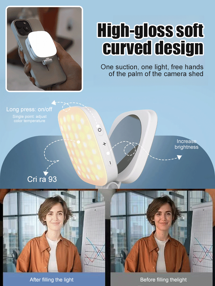 The magnetic filler light snaps into place instantly—your sleek, portable lighting solution wherever you go.